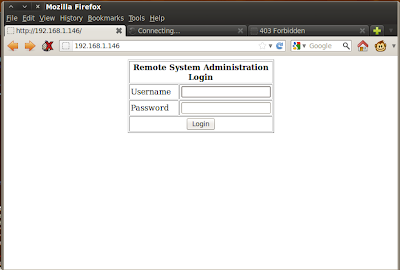 nmap also found an open CUPS port. I decided to start with the webserver. Browsing over to http://192.168.1.146, I was greeted with a login form. I decided to see if I could bypass the authentication mechanism using a simple SQL injection attack. For the username I entered test, and for the password I entered x' or 'x'='x. I was going by the assumption that the backend SQL code looked something like By using