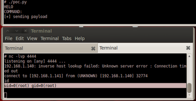 To test it, we setup a netcat listener on port 4444, restart gdb, and execute poc.py once again.